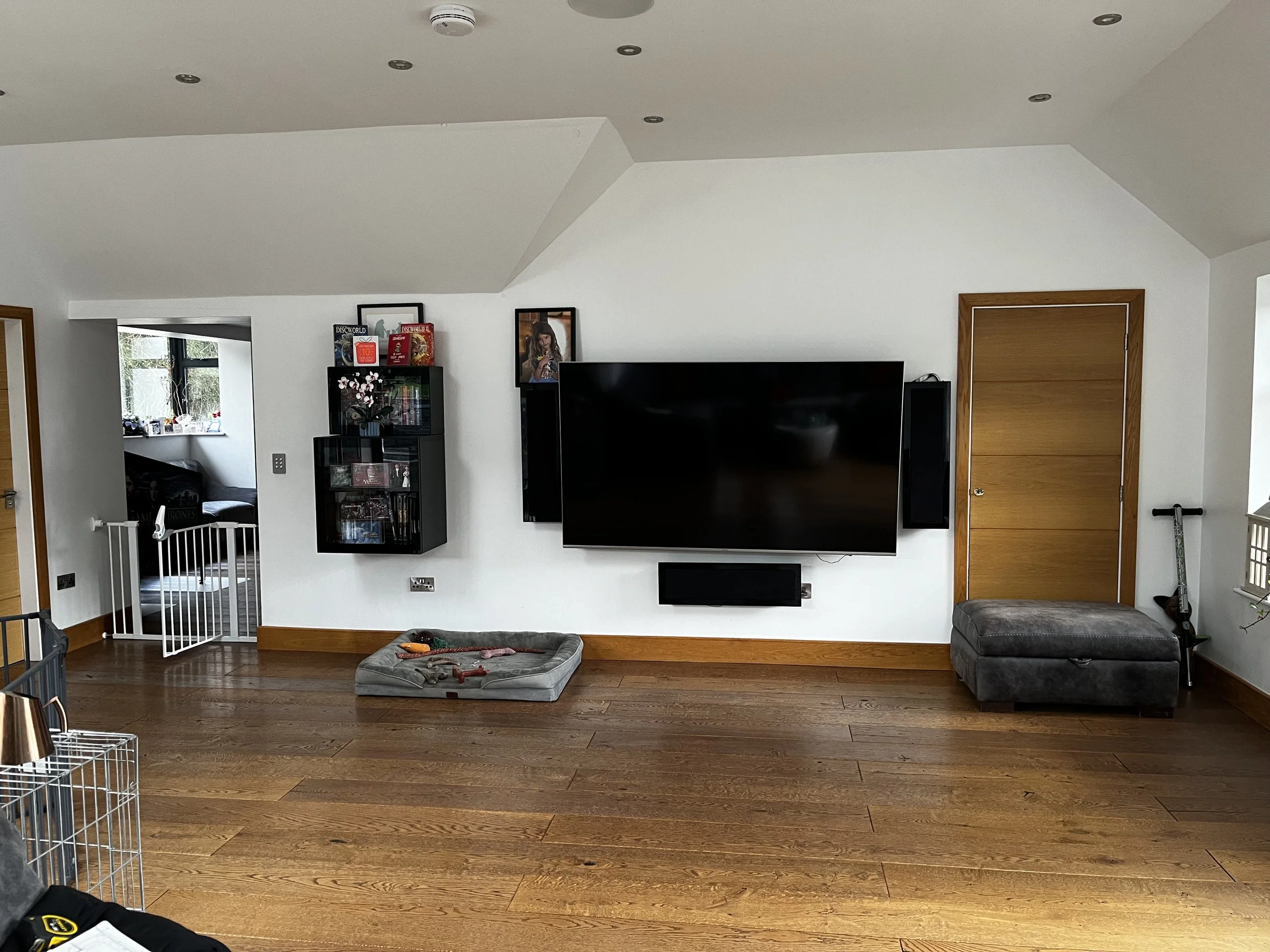 By blocking off the door into the playroom, we created a wider surface area for the massive 1.8m wide TV to be repositioned.